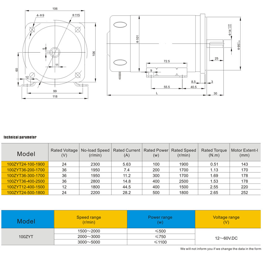 100ZYT servies D.C motor Vertical and horizontal